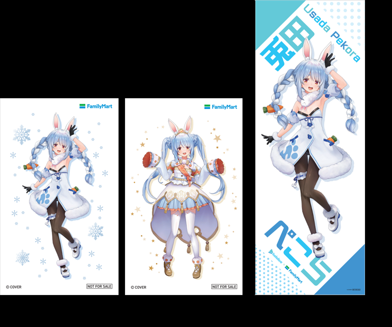 【内容】対象商品を5,000円以上購入すると兎田ぺこらの当キャンペーン限定クリアカードをプレゼント。さらに応募すると抽選で300名さまにボイス付きタペストリーをプレゼント!