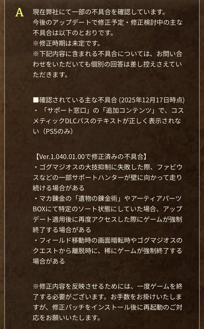 【朗報】モンハンワイルズさん、ゴグマジオス即○技対策の壁が逃げ出す不具合とクラッシュが修正される! 2025/12/21 ゲーム実況者速報 " " 1: ゲーム実況者速報 2025/12/18(木) 09:56:06.09 ID:O8atbMj40 続きを読む Source: ゲーム実況者速報