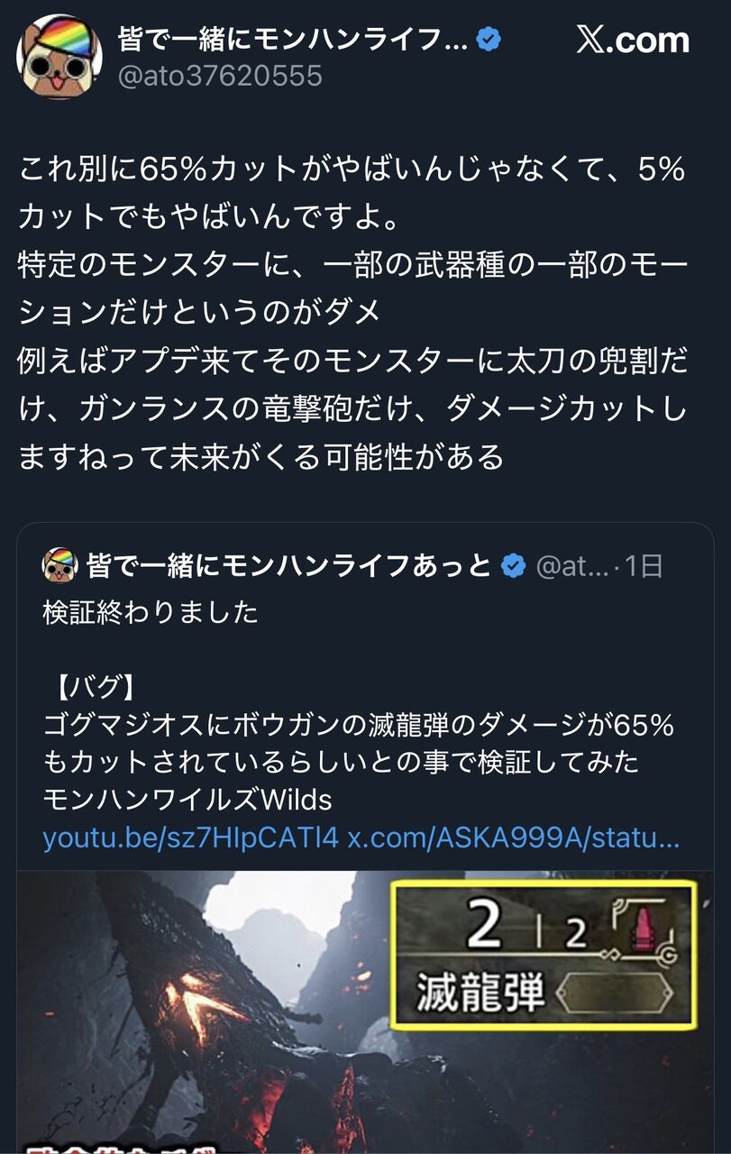 【悲報】モンハンワイルズさん、一部攻撃にサイレントナーフ…… 有名実況者「バグじゃなければ信用問題に関わる!」 2025/12/22 ゲーム実況者速報 " " 1: ゲーム実況者速報 2025/12/21(日) 23:13:49.82 ID:YXtvcyFX0 どうすんのワイルズ 続きを読む Source: ゲーム実況者速報