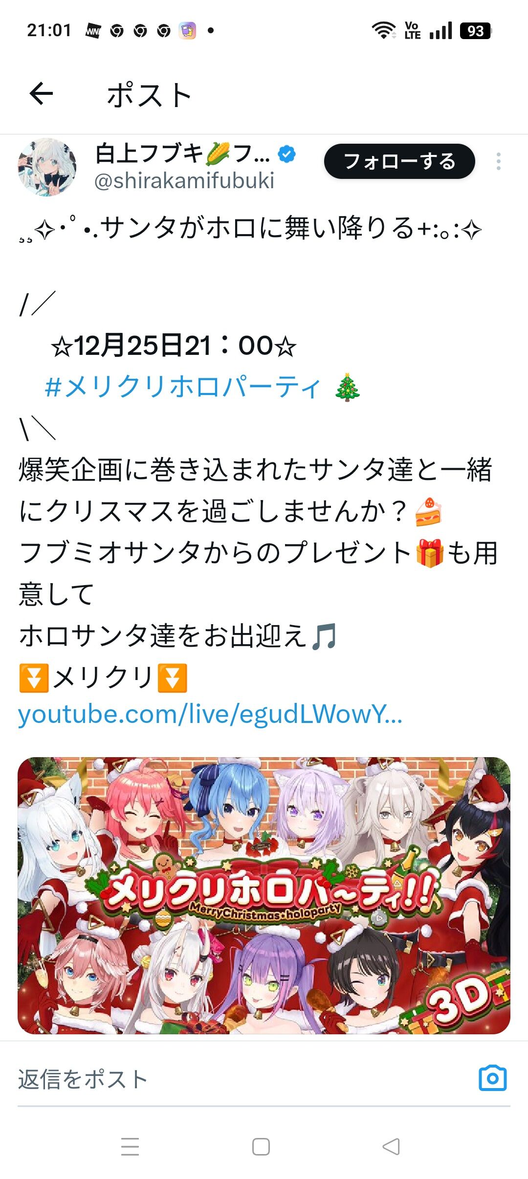 ⏬️メリクリ⏬️https://t.co/KLBthZykbG pic.twitter.com/AQ04Oppi5x— 白上フブキ🌽フブキングダム👑 (@shirakamifubuki) December 22, 2025