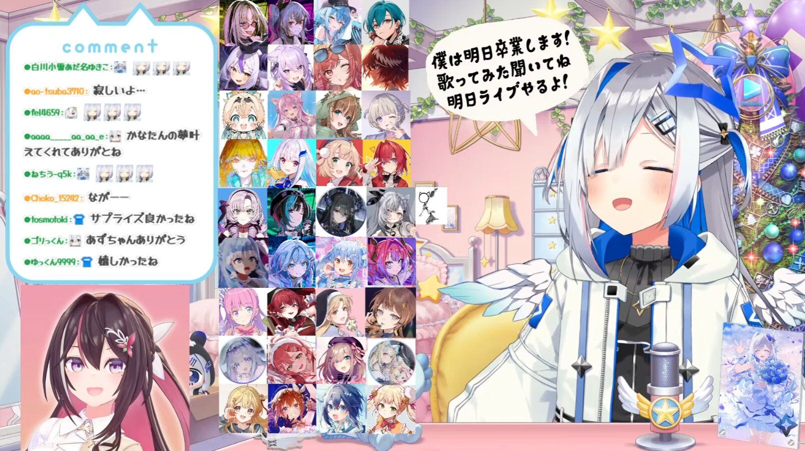 急な卒業発表だったので、凸待ちで一人でも多くの人とおしゃべりできたらなと思って枠を取りました!