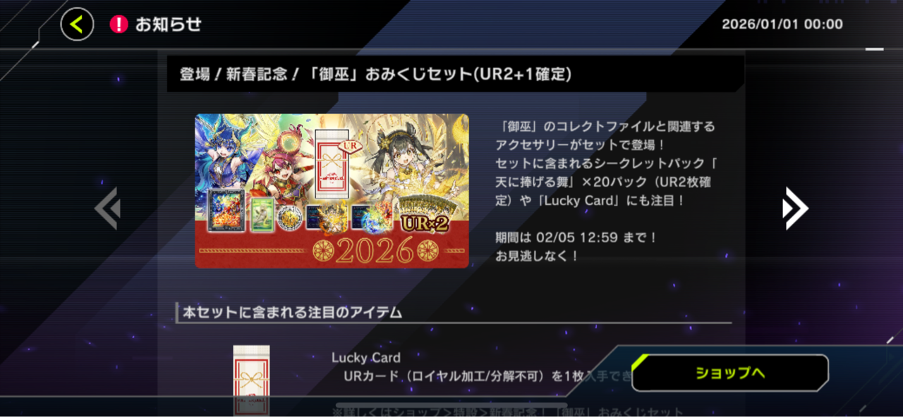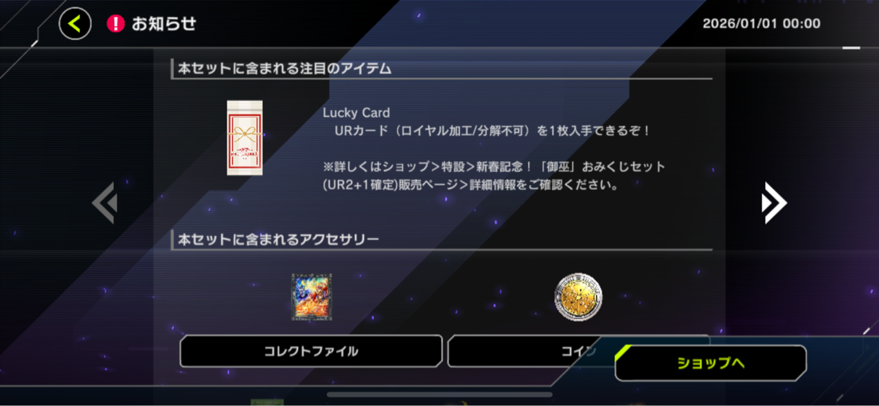 【速報】「御巫」おみくじセット登場+新春ログインボーナス他