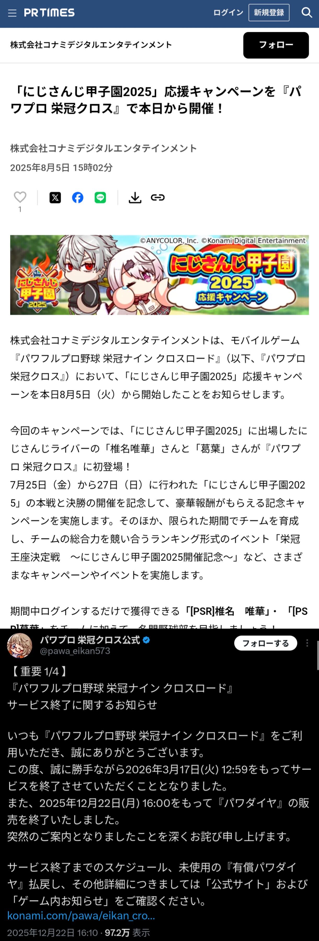 【悲報】パワプロさん、大手Vグループとコラボ半年でサ終してしまう…… 2026/1/1 ゲーム実況者速報 " " 1: ゲーム実況者速報 2025/12/30(火) 23:59:19.81 ID:siBmyHwS0 続きを読む Source: ゲーム実況者速報