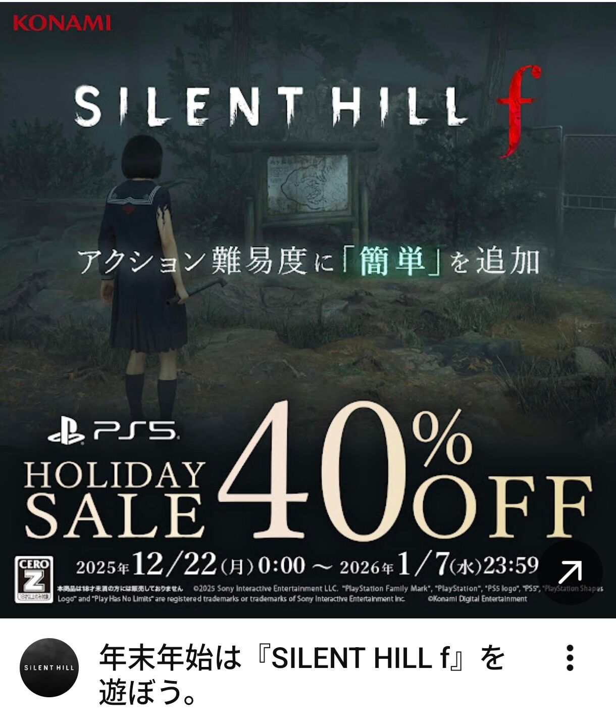 サイレントヒルfの広告「難易度簡単あるんで買ってください!」 2026/1/2 Y速報 " " 1: 2026/01/01(木) 19:46:04.61 ID:dCtGxVId0 続きを読む Source: Y速報