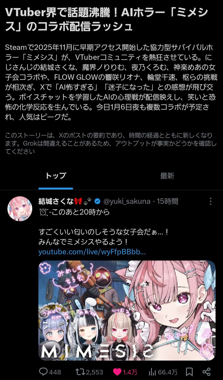 【朗報】結城さくなさん、外部コラボが面白すぎるwwwwwwwwww 2026/1/8 ゲーム実況者速報 " " 10: ゲーム実況者速報 2026/01/06(火) 20:35:24.98 おもろい面子やん 続きを読む Source: ゲーム実況者速報