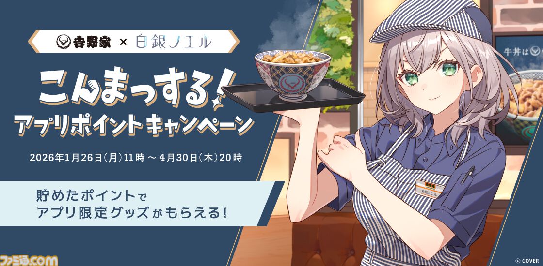 ホロライブ・白銀ノエル「吉野家」コラボ、目玉の「丼ぶり」が欲しい団員に立ちはだかる壁 2026/1/22 Y速報 " " 1: 2026/01/21(水) 16:58:08.06 ID:HmcY1t2O0 吉野家は、カバーが運営する女性VTuberグループ“ホロライブ”に所属する白銀ノエルさんとの初コラボ企画“吉野家×白銀ノエル「こんまっする!」アプリポイントキャンペーン”を開催する。開催期間は2026年1月26日11時~4月30日20時。 https://www.famitsu.com/article/202601/63613 続きを読む Source: Y速報