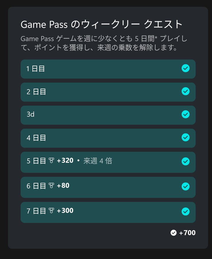 週に5回Xboxで遊ぶと得られるポイント(任意)