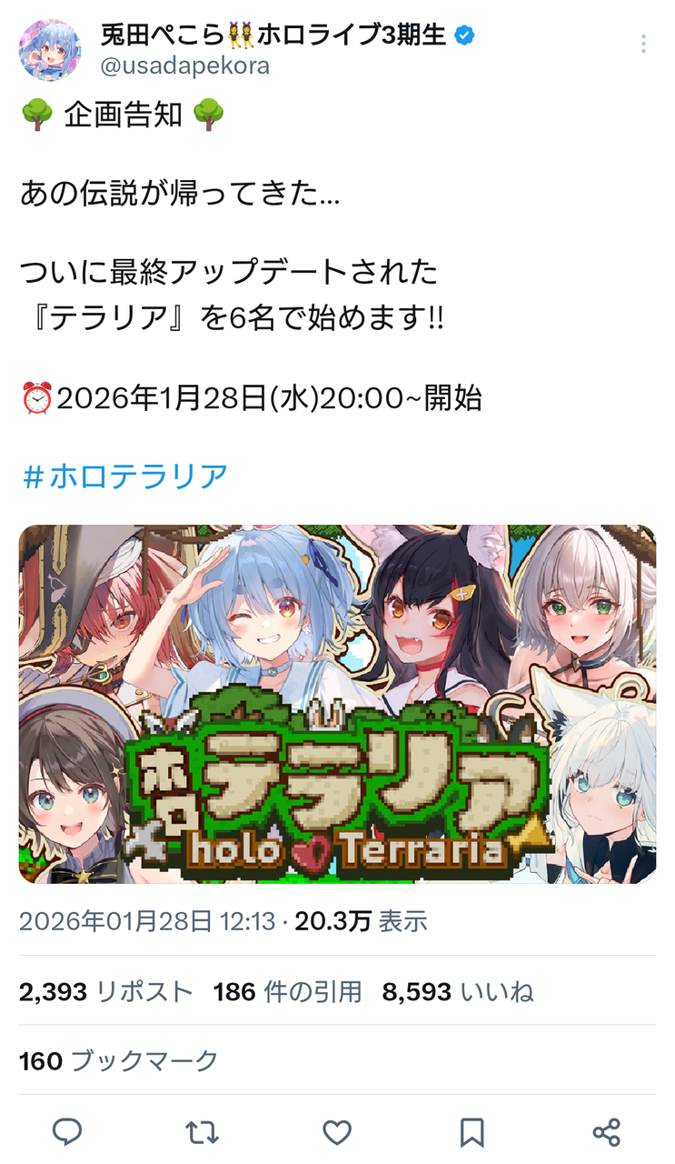 【覇権】超人気Vチューバーさん、テラリア企画の参加メンバーが豪華過ぎると話題にwwwwwwwwww 2026/1/28 ゲーム実況者速報 " " 1: ゲーム実況者速報 2026/01/28(水) 13:35:54.790 ID:/krYd5M50 これは覇権コンテンツの予感 続きを読む Source: ゲーム実況者速報