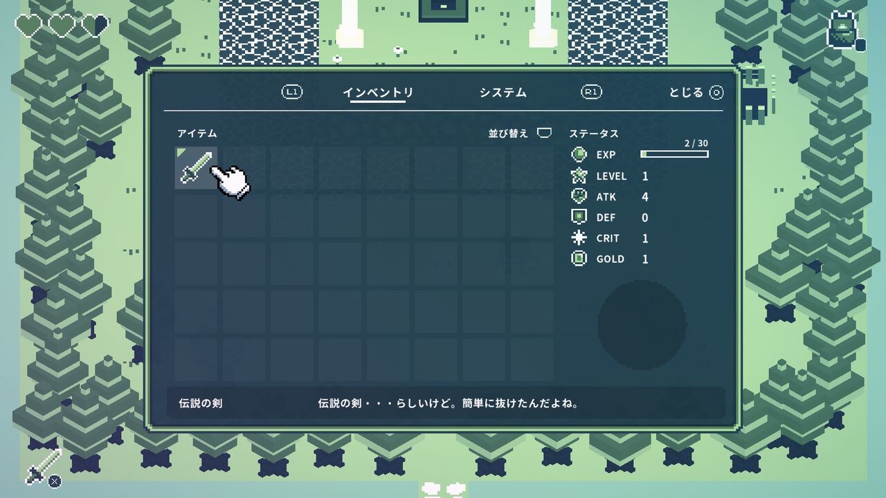 アイテムとステータスが1画面で表示、シンプルイズベスト!?