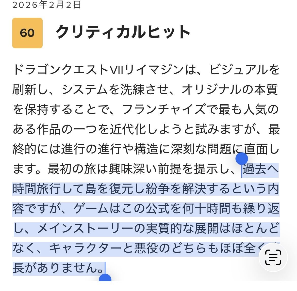 技術的には凄いが、少し魂がないように感じらる、他のドラクエほど衝撃的ではない