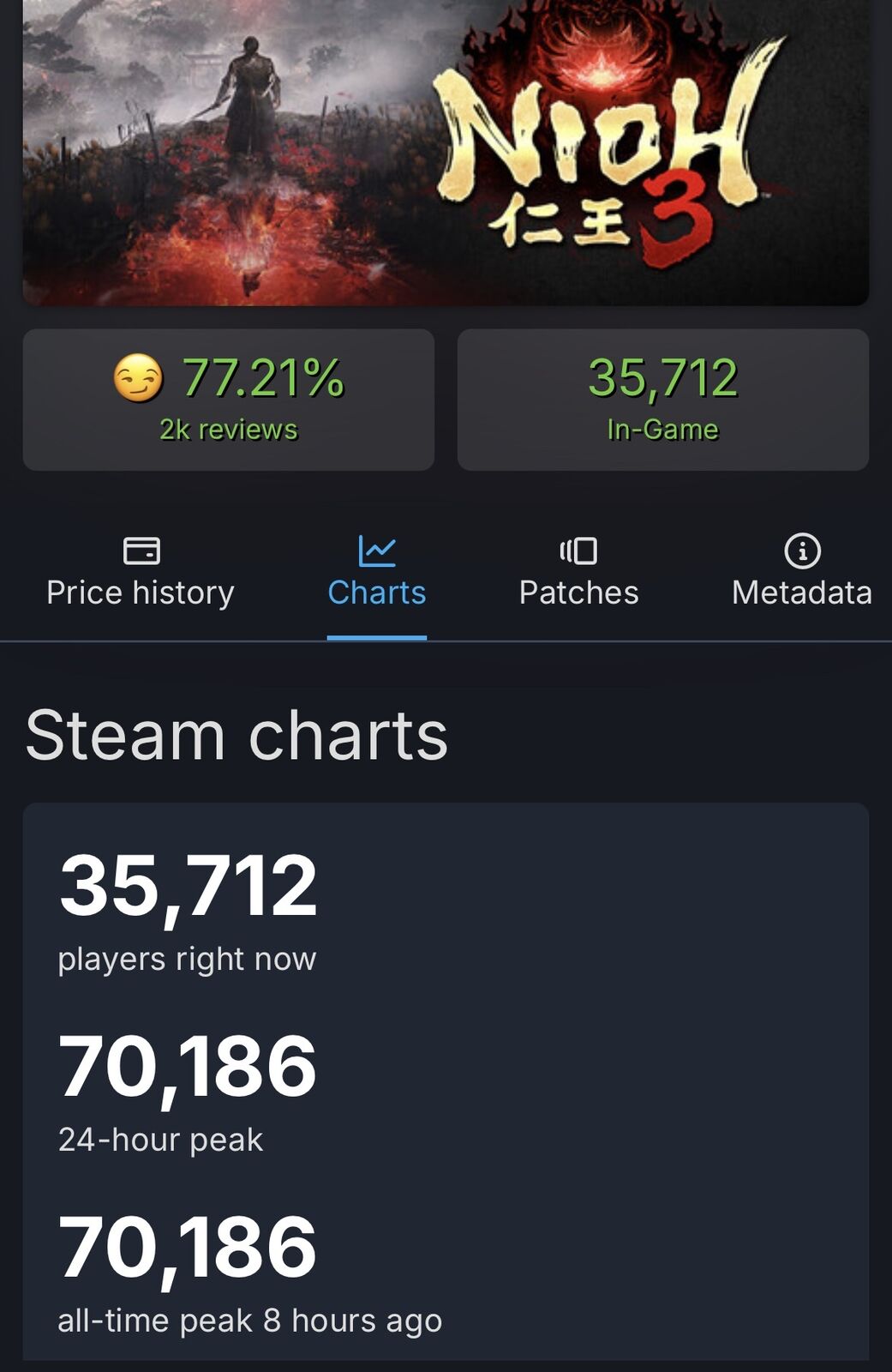 仁王3が世界中で大ヒット!!最大同接数もドラクエ7超えの歴史的快挙 2026/2/7 Y速報 " " 1: 2026/02/07(土) 08:14:05.96 ID:7FZ9ZlNn0 仁王3がSteamで70,000人以上の同時接続プレイヤーを記録。 • シリーズ史上最大のSteamローンチ • 世界トップセラー1位 • フルゲームが無料デモを上回るピークを記録 続きを読む Source: Y速報