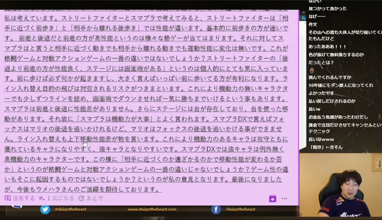 【悲報】ウメハラさん、無駄に長いメッセージを読まされてしまう…… 2026/2/9 ゲーム実況者速報 " " 1: ゲーム実況者速報 2026/01/26(月) 20:24:50.970 ID:ge1DSEwZ0 まとめるとスト6とスマブラの違いは歩きの性能が違うと熱弁 ウメハラの答え「それは開発者の気分次第で変わるので明確な違いとは言えませんね。貴重な意見をありがとうございます、はい次」 続きを読む Source: ゲーム実況者速報