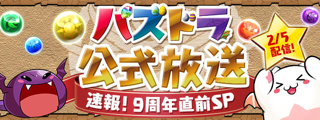 「パズドラ公式生放送~速報!9周年直前SP~」実況会場はこちら!【参加型記事】 2021/2/6 オーガch.-パズドラ攻略まとめ速報 " " 「実況会場・参加型」記事にて公式生配信で発表された新情報等を随時更新していきながら、読者の皆様とわいがやできればなと思い企画しましたのでどうぞ気軽にコメントお願いします! ※情報量次第では当実況記事が複数になる可能性があります。 続きを読む Source: オーガch.-パズドラ攻略まとめ速報