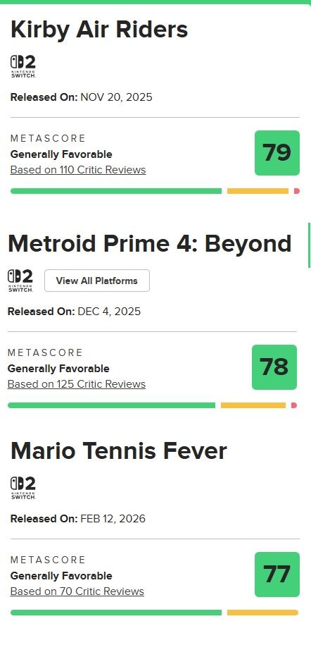【悲報】任天堂ソフト、メタスコア崩壊へ 80点以上が取れない異常事態に 2026/2/12 Y速報 " " 1: 2026/02/11(水) 17:58:32.20 ID:pLnt7rZd0 続きを読む Source: Y速報