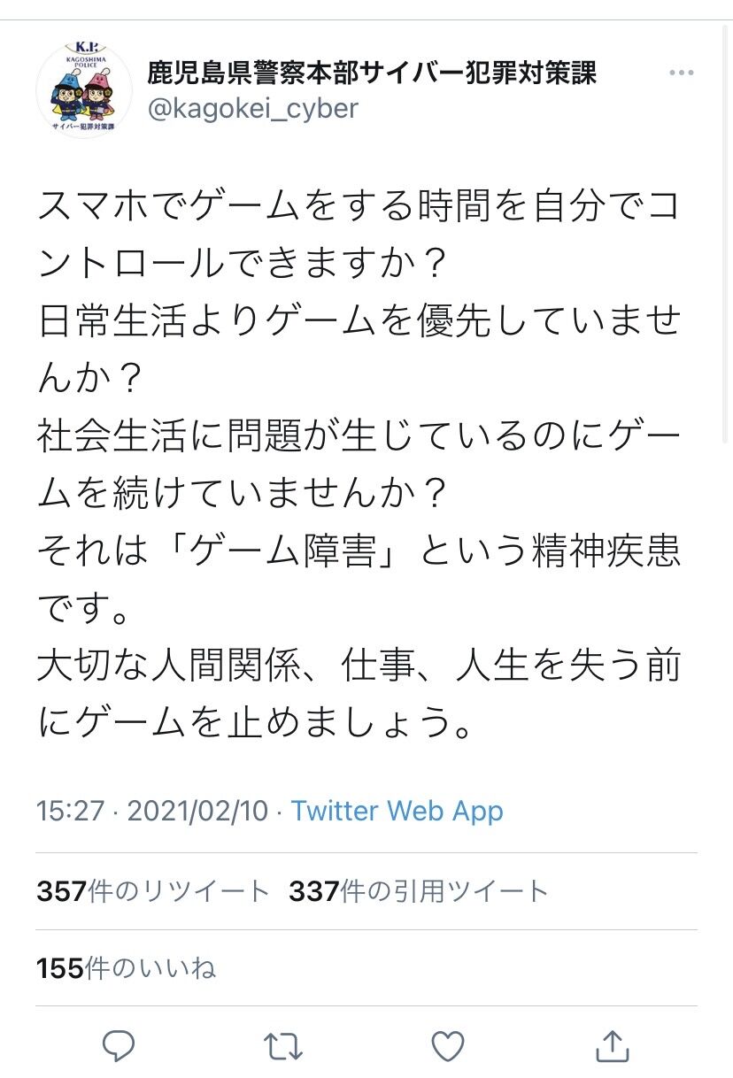 警察「ゲームを長時間やると【ゲーム障害】になる。人間関係や仕事、人生全部失うことになる」 2021/2/14 Y速報 " " 1: 2021/02/12(金) 01:17:21.37 ID:wyxQHGcy0 どーすんのこれ… 続きを読む Source: Y速報