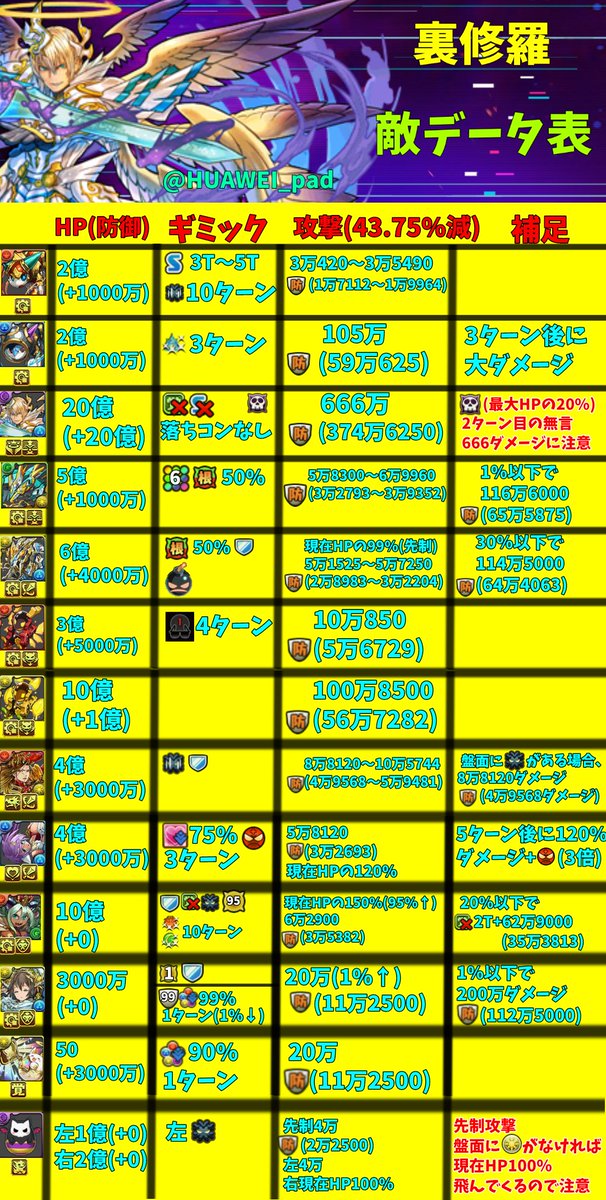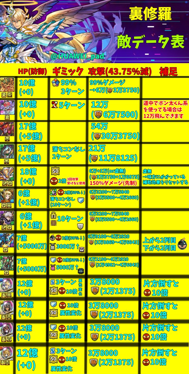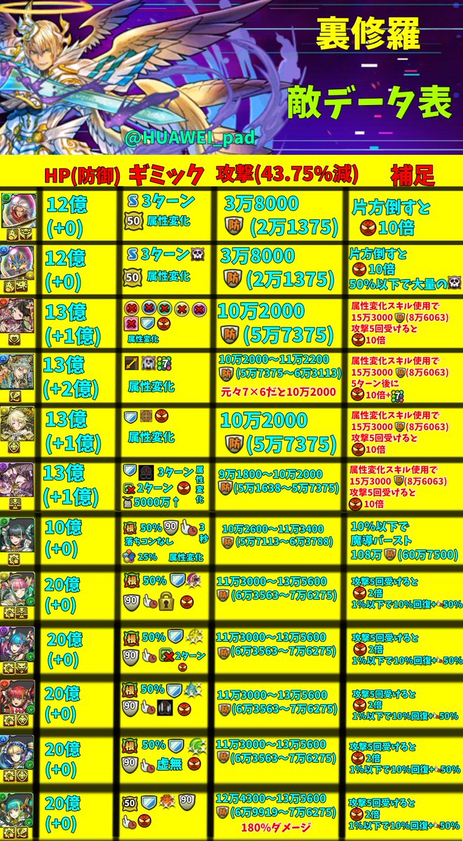 裏修羅の敵データ表作りました!