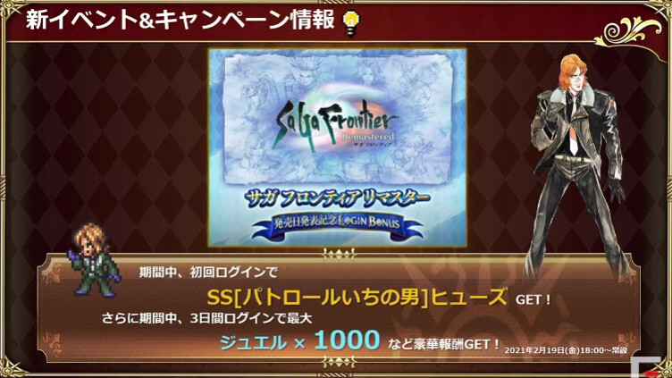 【生放送】明日からログインボーナスで「ヒューズ」が配布で仲間に!サガフロキャンペーン来るぞ!【ロマサガRS】 2021/2/18 ロマサガRS攻略まとめ " " 219 名前ボストン速報:2021/02/18(木) 20:48:17.12 ID:xV9 やっときたか 続きを読む Source: ロマサガRS攻略まとめ