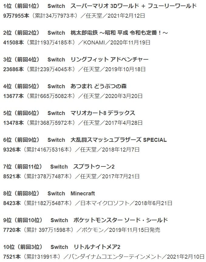 今週もSwitchランキングになってしまう・・・ 2021/2/26 Y速報 " " 1: 2021/02/25(木) 22:00:45.19 https://www.famitsu.com/news/202102/25215051.html 続きを読む Source: Y速報