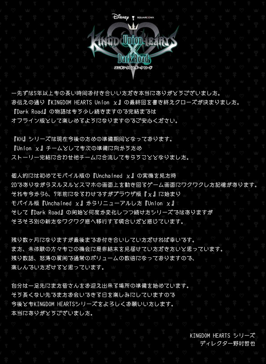 これにともない、『KINGDOM HEARTS Union χ Dark Road』は、2021年4月30日(金) 10:00に運… https://t.co/nmD3LvXFR0