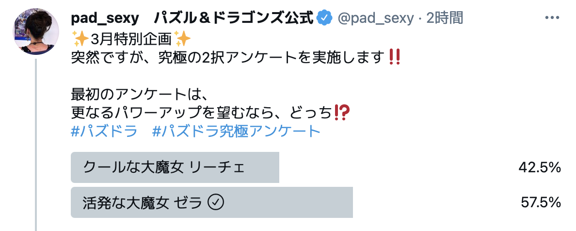 更なるパワーアップを望むなら、どっち⁉️#パズドラ #パズドラ究極アンケート— pad_sexy パズル&ドラゴンズ公式 (@pad_sexy) March 1, 2021