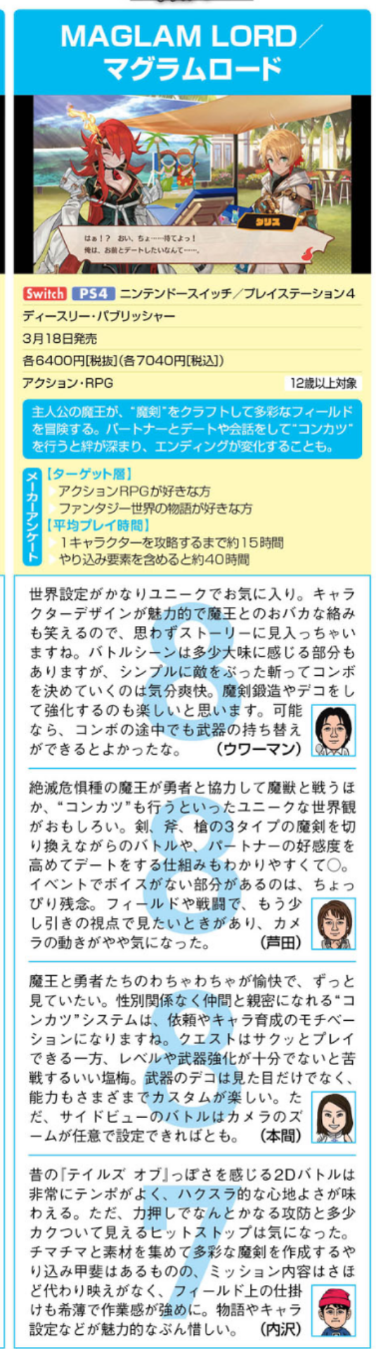 本日3月18日(木)より発売された『MAGLAM LORD/マグラムロード』のネット上の評価や感想をまとめています。
