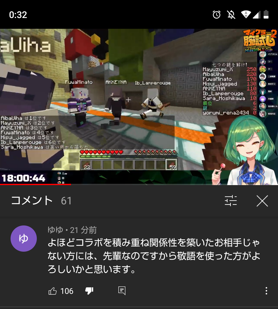 Vtuber業界、体育会系だった 2021/3/30 Y速報 " " 1: 2021/03/29(月) 13:18:39.63 ID:0JAv7wf40 後輩Vtuberが先輩にタメ口でフレンドリーに絡んだせいでコメント欄大荒れ ↓ 低評価へ https://i.imgur.com/BWWoX6K.jpg 続きを読む Source: Y速報