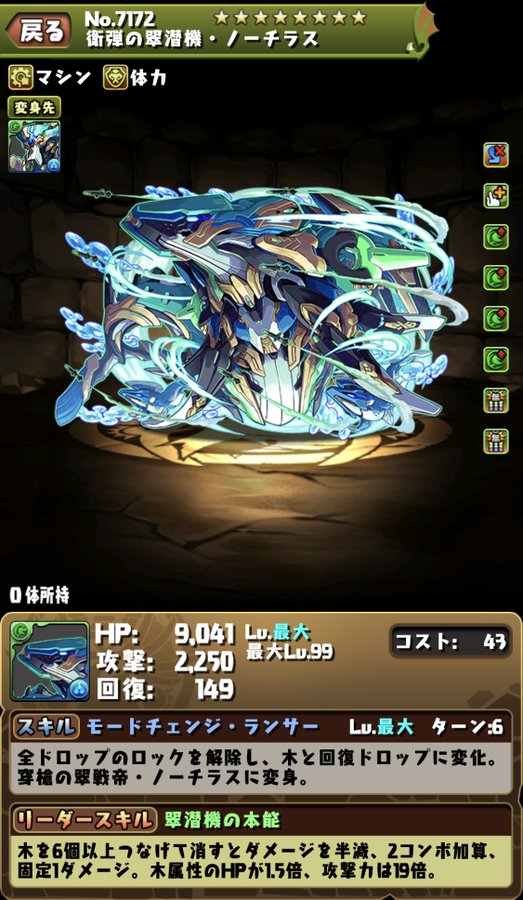 新たなフェス限定モンスター「翠潜艇・ノーチラス」の図鑑画面もご紹介しちゃいます!※画像の性能は開発中のため、変更する可能性もございます。 #パズドラ pic.twitter.com/5p1doNG9Jm