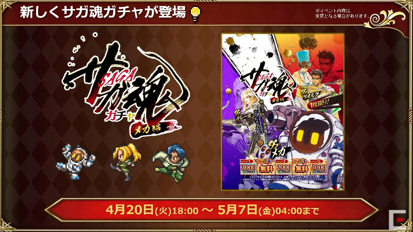 サガ魂ガチャは実験段階でこれからも試行錯誤していくんだろうけど