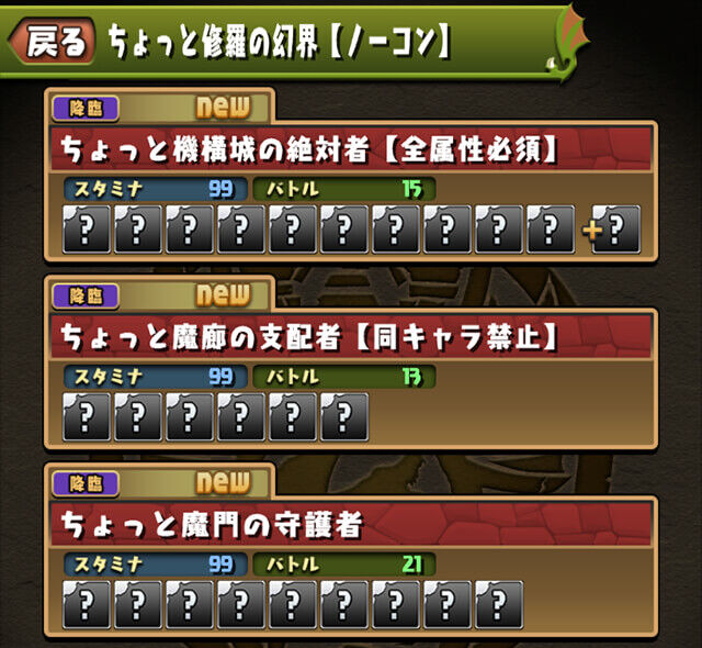 期間:04/10(土)12:00~04/18(日)23:59「修羅の幻界【ノーコン】/機構城の絶対者【全属性必須】」フロアの調整版!