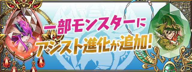 ※内容が反映されない場合は、アプリの再起動をお試しいただきますようお願いいたします。04/22(木)メンテナンス後より一部モンスターにアシスト進化が追加されるぞ!