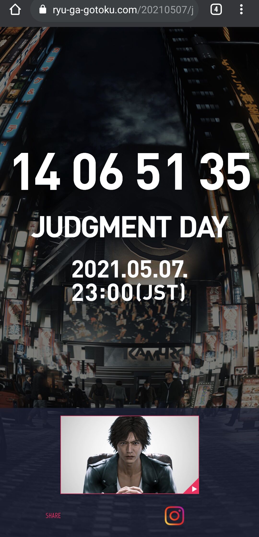 「ジャッジアイズ」続編発表か…?!『JUDGMENT DAY』なるカウントダウンサイトが公開!情報解禁は5月7日23時