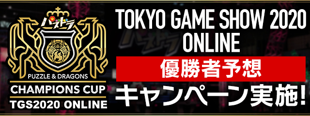 【速報】「パズドラチャンピオンズカップ TOKYO GAME SHOW 2020 ONLINE」 優勝者予想キャンペーン実施キタ━━━━(゚∀゚)━━━━!!【公式】 2020/9/18 オーガch.-パズドラ攻略まとめ速報 " " 続きを読む Source: オーガch.-パズドラ攻略まとめ速報