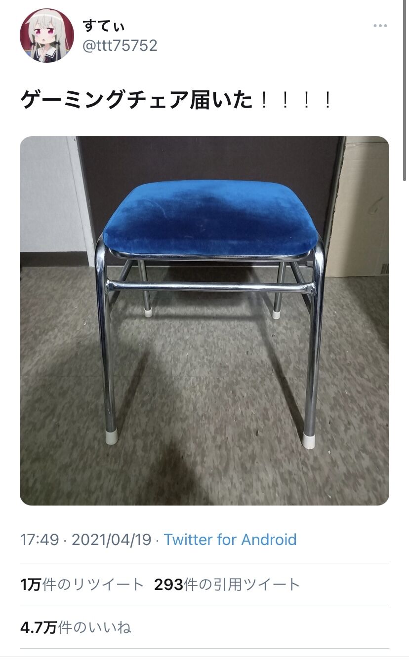 【画像】ツイ民「ゲーミングチェア届いた!」→4.7万いいね!!!! 2021/5/11 Y速報 " " 1: 2021/05/10(月) 07:37:51.04 ID:TQCf8oclp 続きを読む Source: Y速報