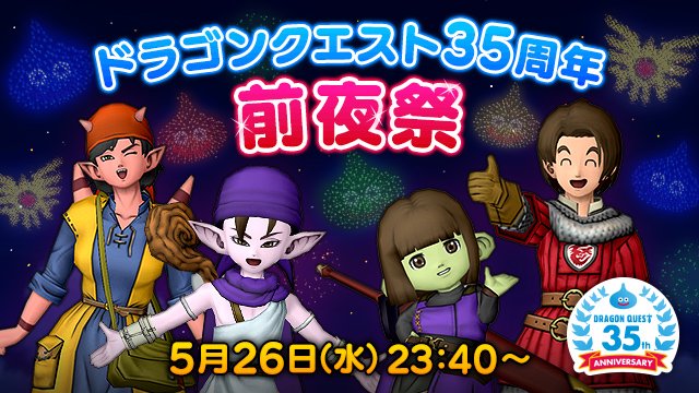 【おしらせ】 「ドラゴンクエスト35周年」をお祝いする「前夜祭」を、5月26日(水)23:40頃より開催!