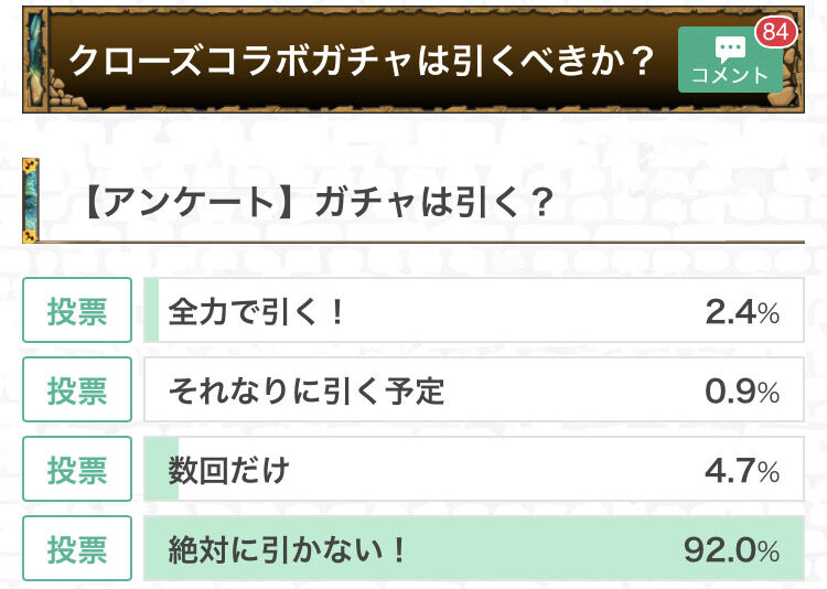【パズドラ】某サイトで「絶対に引かない」が92%、クローズコラボ売上大丈夫? 2021/6/7 オーガch.-パズドラ攻略まとめ速報 " " 548: おーがちゃんねる ダイケ、ガチャ売上大丈夫? 続きを読む Source: オーガch.-パズドラ攻略まとめ速報