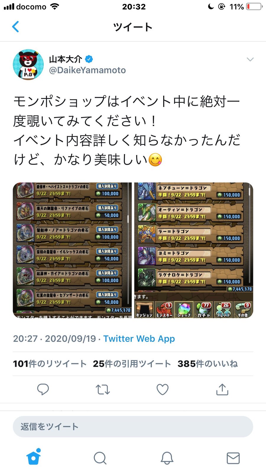 【パズドラ】MP半額イベントが本日終了!山本P曰くかなり美味しいらしいぞおおおおおおおお 2020/9/22 オーガch.-パズドラ攻略まとめ速報 " " 97: おーがちゃんねる 大介は無知かわいい 続きを読む Source: オーガch.-パズドラ攻略まとめ速報