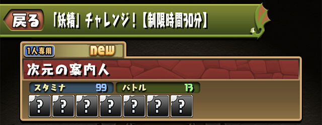 期間中、クリアは一度きりのスペシャルダンジョン『「妖精」チャレンジ!【制限時間30分】』が1人モード限定で登場!