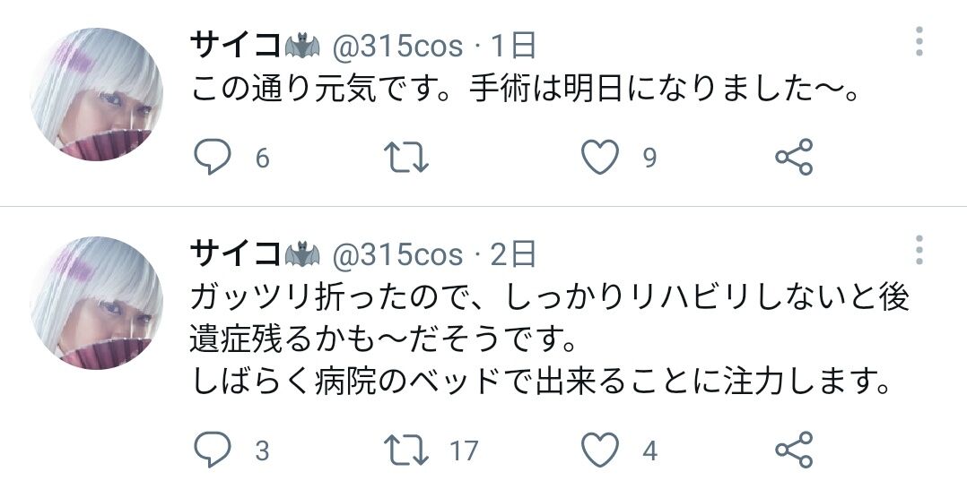 骨折してコスプレのまま緊急搬送、入院へ https://t.co/UJLni9bYLK