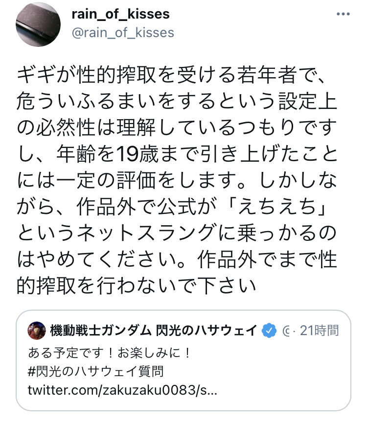 【悲報】オタク「閃ハサ次回作にえちえちシーンある?」 公式「あるよ!」 → 炎上 2021/6/21 Y速報 " " 1: 2021/06/19(土) 19:58:16.19 ID:I4v/CeTYp ↓ この回答に女さん達がブチギレ! 「もう見ない」「アップデートしろ」「女性を性的搾取するな」との声が相次ぐ 続きを読む Source: Y速報