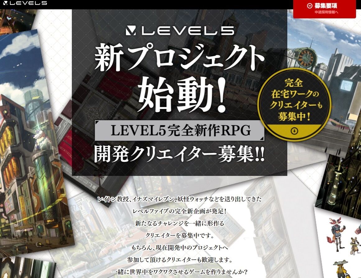 レベルファイブが新プロジェクト始動!「完全新作RPG」 2021/7/8 Y速報 " " 1: 2021/07/07(水) 17:49:36.93 ID:1dFcRusL00707 開発クリエイター募集中! https://www.level5.co.jp/recruit/career/new/ 続きを読む Source: Y速報