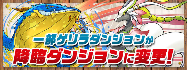 現在ゲリラダンジョンとして出現している下記の対象ダンジョンが、降臨ダンジョンとして日替わりで出現するようになるぞ!