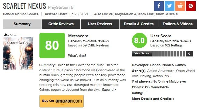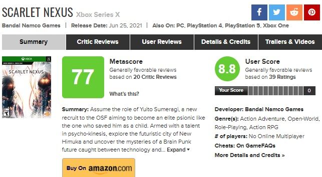 スカーレットネクサス、ユーザースコア8.8なのに売上が 2021/7/11 Y速報 " " 1: 2021/07/10(土) 20:35:54.88 ID:2MvQFYR00 https://www.metacritic.com/game/xbox-series-x/scarlet-nexus/user-reviews 続きを読む Source: Y速報