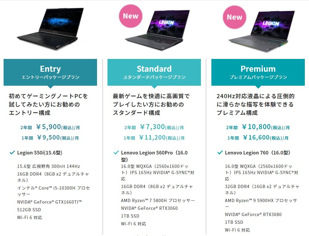 ゲーミングPC本体からアクセサリーセット、最新ゲーム遊び放題の利用権、サービスサポートまでついて月々定額5,900円(税込)から。
