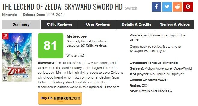 『ゼルダの伝説 スカイウォードソードHD』のメタスコア81点 2021/7/16 Y速報 " " 1: 2021/07/14(水) 22:13:28.37 ID:EITevPo50 https://www.metacritic.com/game/switch/the-legend-of-zelda-skyward-sword-hd?ref=hp 続きを読む Source: Y速報