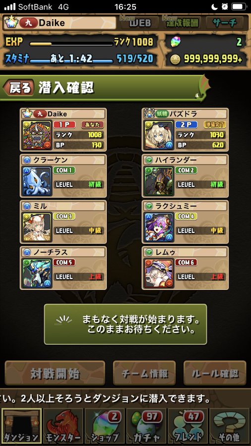 8人対戦のルームマッチを7人以下で遊ぶ場合、左下の「対戦開始ボタン」を押すと、残り枠はCOMが入ります!