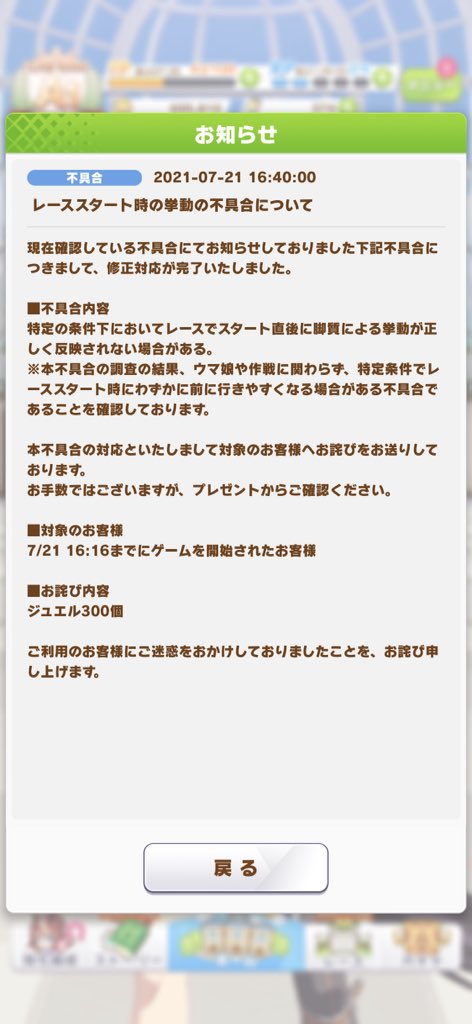 【朗報】ウマ娘の1ヶ月間放置されたバグついに直る!!お詫びでジュエルばら撒きwwwww 2021/7/22 Y速報 " " 1: 2021/07/21(水) 17:35:59.05 ID:OtnxNvwE0 詫びも大盤振る舞いでユーザーも大盛りあがりやね☺ 続きを読む Source: Y速報