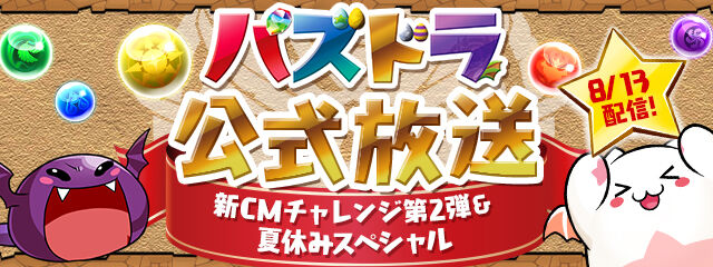 【速報】「パズドラ公式放送~夏休みSP~」実況会場はこちら! 2021/8/13 オーガch.-パズドラ攻略まとめ速報 " " 「実況会場・参加型」記事にて公式配信で発表された新情報等を随時更新していきながら、読者の皆様とわいがやできればなと思い企画しましたのでどうぞ気軽にコメントお願いします! ※情報量次第では当実況記事が複数になる可能性があります。 続きを読む Source: オーガch.-パズドラ攻略まとめ速報