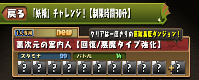 このダンジョンは、テクニカルダンジョン「裏・神秘の次元【ノーコン】/裏次元の案内人【回復/悪魔タイプ強化】」がタイムアタック形式となったダンジョンだ!