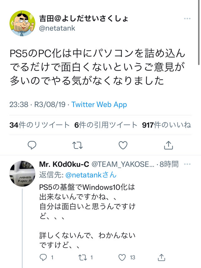 吉田製作所さん、PS5改造を批判されやる気を失う 2021/8/22 Y速報 " " 1: 2021/08/20(金) 07:52:16.56 ID:rZ2/3Ggx0 もうやらないもよう 続きを読む Source: Y速報
